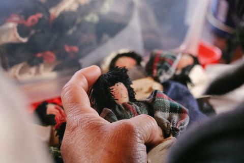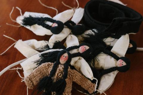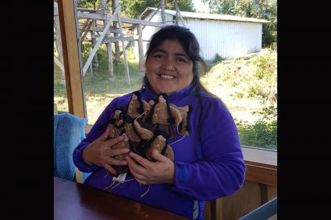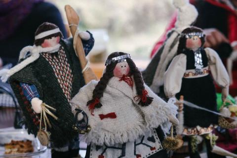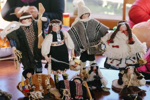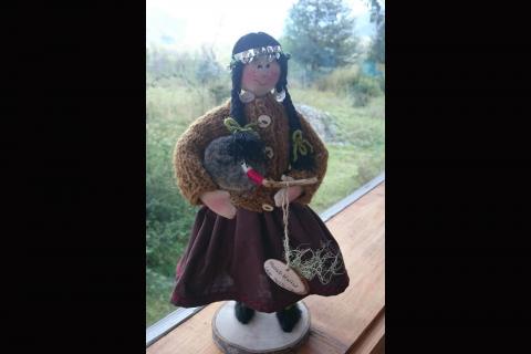 The Juan Quintuman community is home to the Mapuche Magical Beings Workshop. Our group of six women makes finely detailed dolls. These dolls convey the rich Mapuche culture, each requiring three days of meticulous handiwork to perfect. They are created through a combination of techniques such as weaving, knitting, and painting. They are adorned with traditional and modern Mapuche clothing and accessories. Our group deliberately sources our materials from our surrounding area to support our local community.