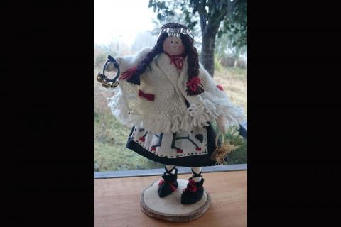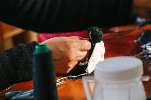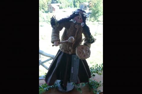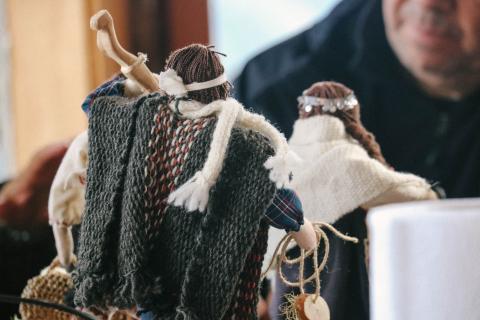 Our designs convey a variety of occupations and activities. We make 11 female designs and four male designs of various sizes, which are equally available at our sales sites. Among the female dolls we include the “Blue Woman”. This doll exemplifies the assistant to the Machi, the top priestess in the Mapuche ceremony of Nguillatun. Other characters represent the collector of herbs, as well as the water carries. Every doll employs a unique combination of artistic processes including weaving, sewing, tying, printing, woodwork, metalwork, wool processing, dying, knitting, and embroidery. We also make sure to incorporate wood, metal, string, and natural materials from the nearby forest. At the end of a series of steps, dolls have traditional clothing along with an array of jewelry, bags, instruments, tools, and baskets. Our members oversee every step of the manufacturing process, from shearing of sheep for wool to knitting the fine details of traditional Mapuche clothing.